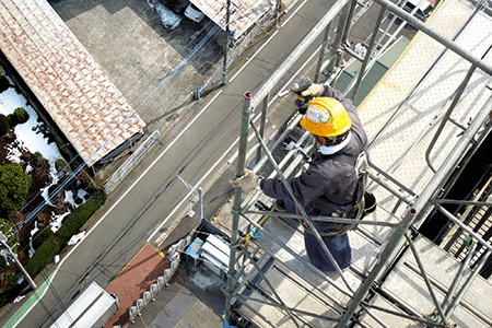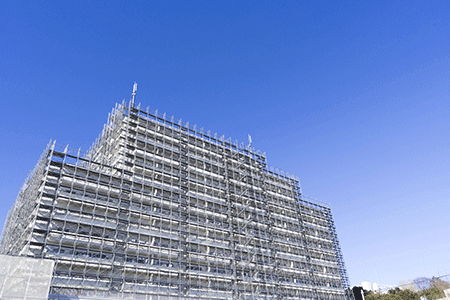 ビルや橋梁、倉庫や発電所など、様々な構造物の建設に必要となる、足場・安全設備を設置します。外壁の塗装や補修のための工事にも必要となります。当然足場の解体も含まれます。